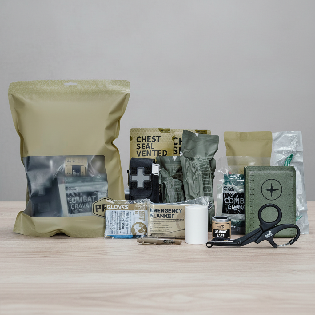 Plotselinge ongevallen en zware bloedingen zijn belastend en vereisen snelle hulp. Dit pakket levert gerichte traumazorg, zoals tourniquets, borstafsluitingen en gecomprimeerde gaasjes om bloedingen snel te stoppen. Alle onderdelen zijn steriel, vacuümverpakt en direct inzetbaar voor het geval dat. De compacte indeling past in een rugzak, auto of huisapotheek en blijft binnen handbereik.