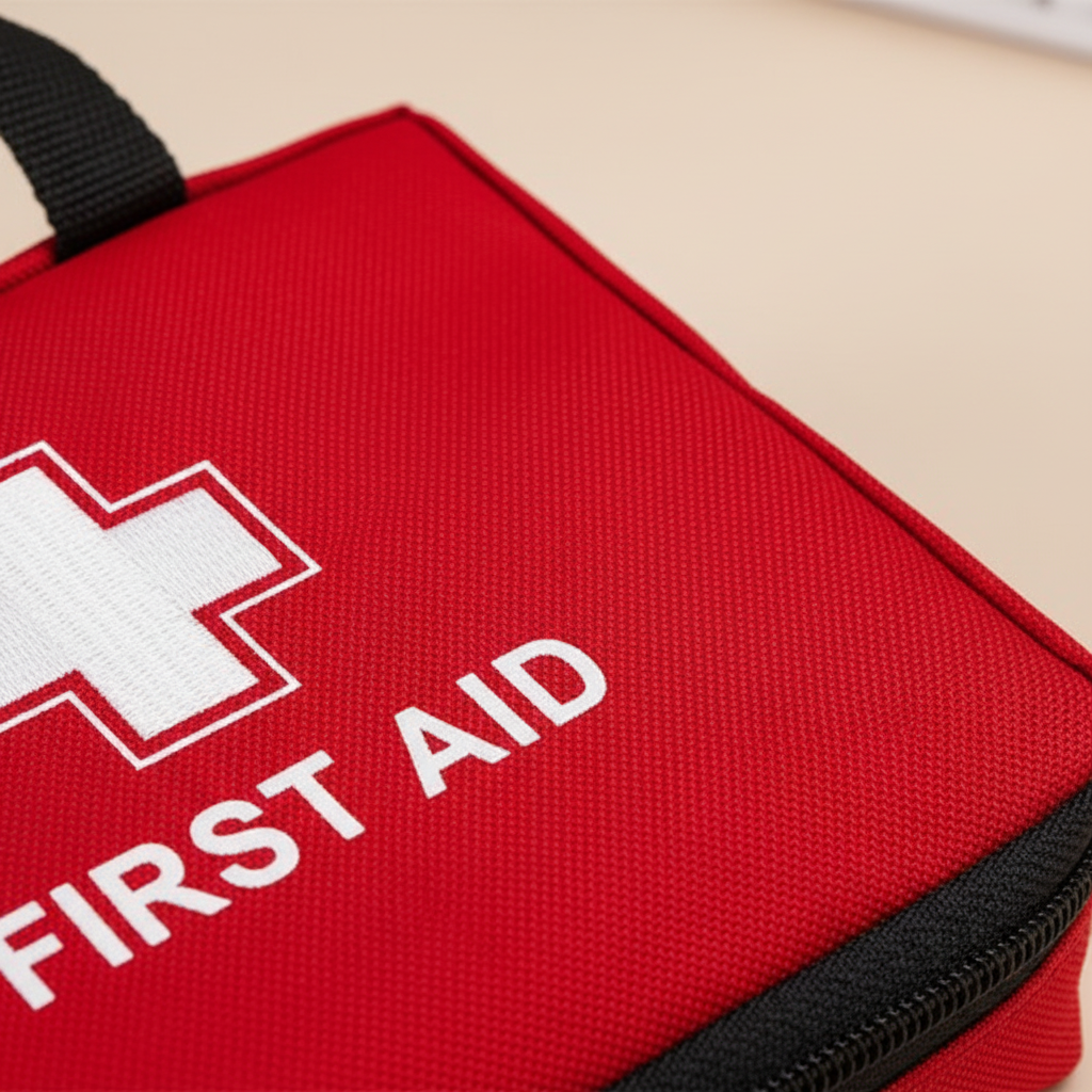 De compacte verbanddoos bevat essentiële medische hulpmiddelen. Kleinere snijwonden en verwondingen kunnen direct worden verzorgd.