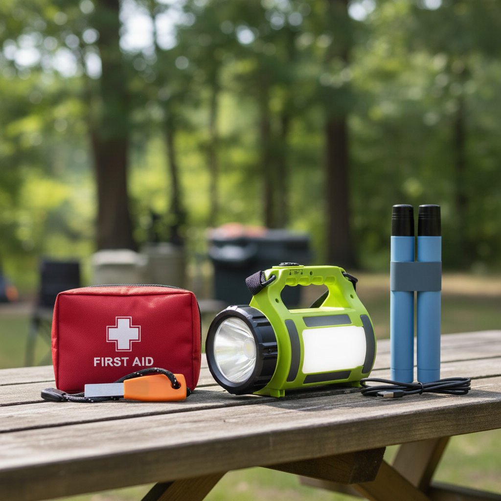 Wees voorbereid wanneer het erop aankomt. Deze praktische set verenigt waterzuivering, eerste hulp en betrouwbare verlichting in een handzame oplossing.