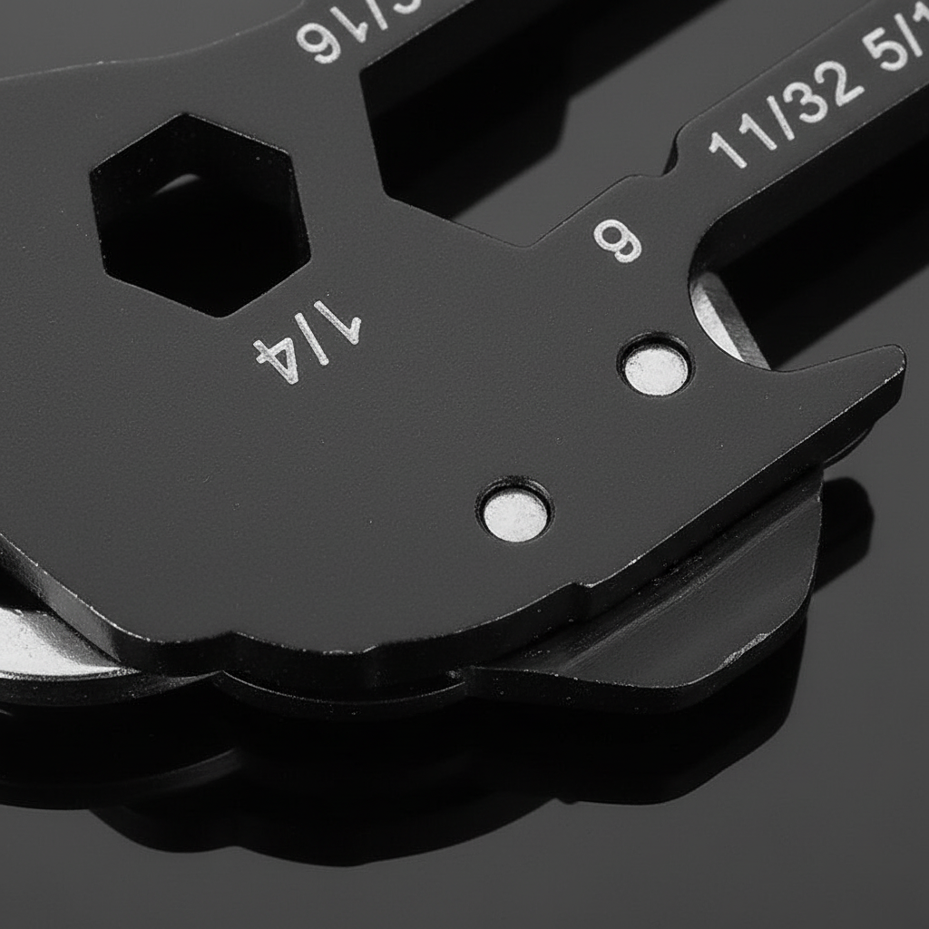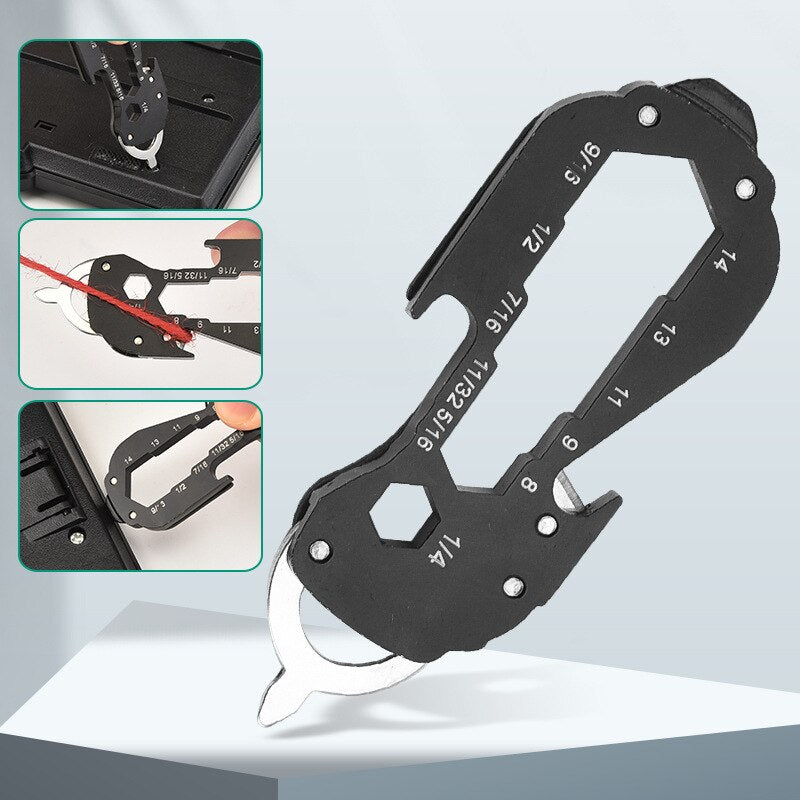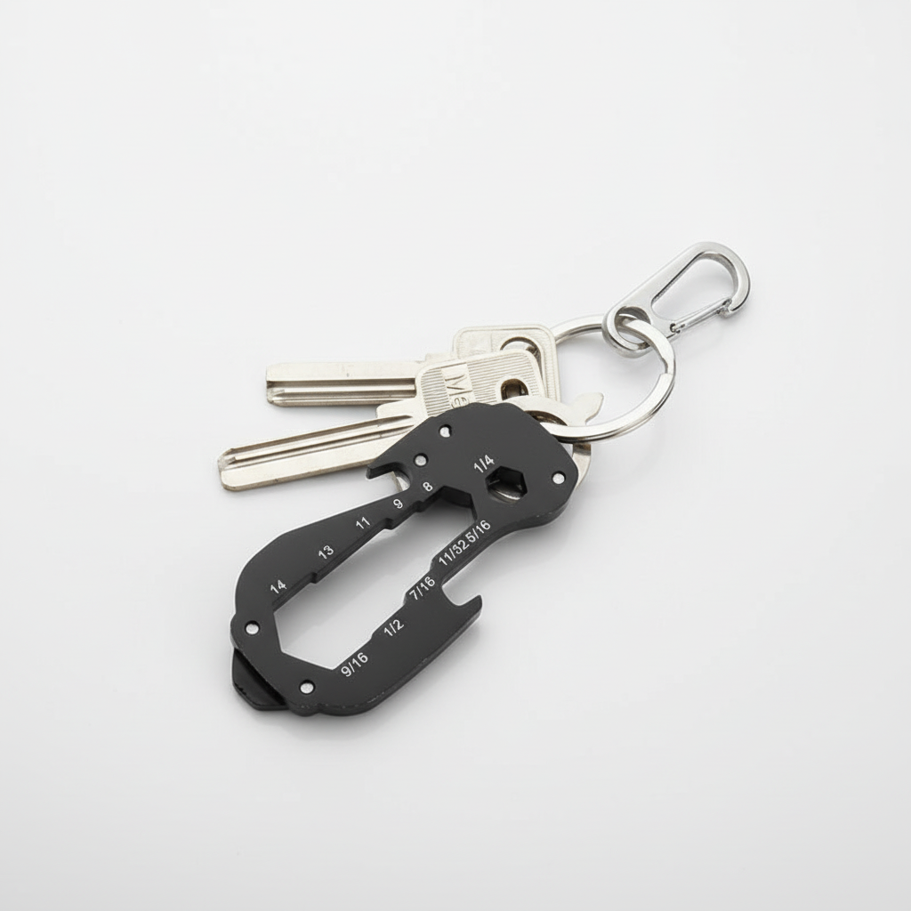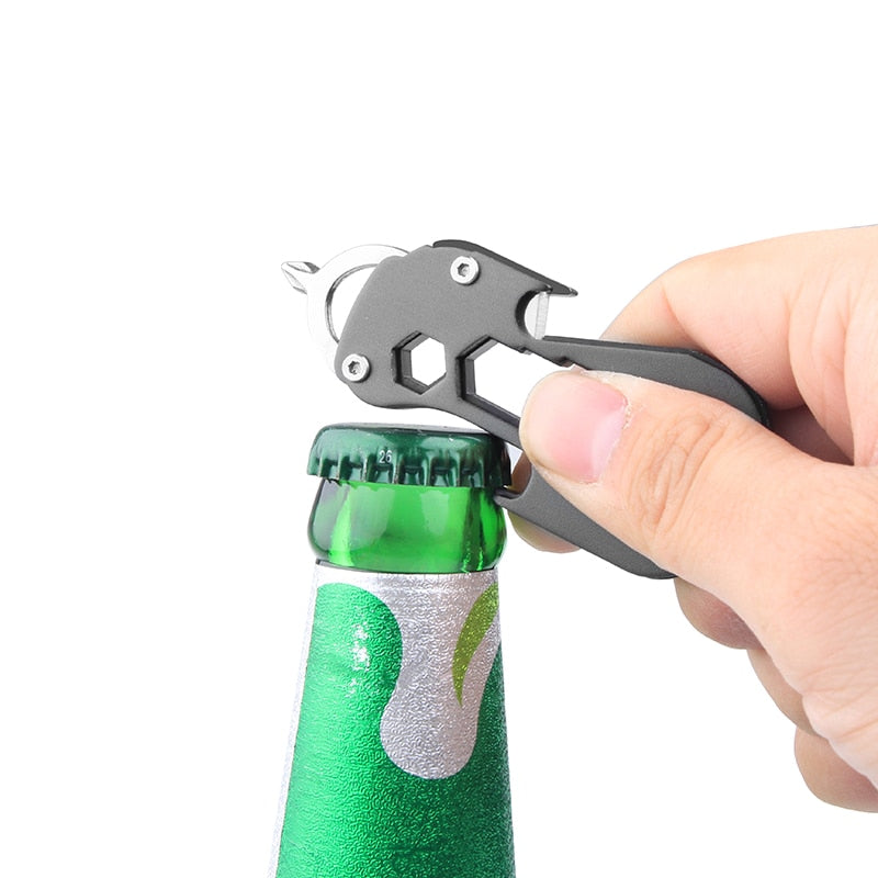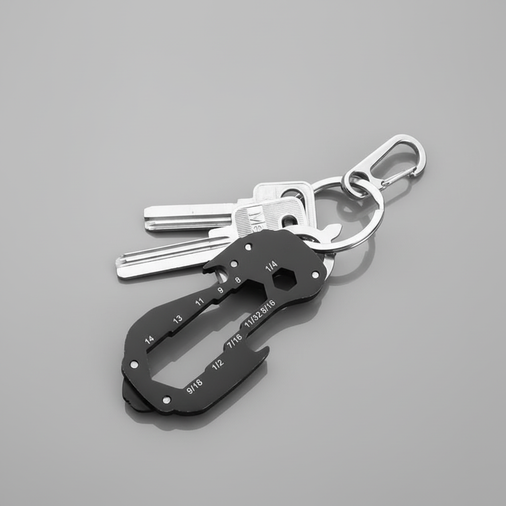 Het gebeurt vaak dat je onderweg een klein gereedschap mist en een eenvoudige taak een vervelende onderbreking wordt. Dit praktische sleutelgereedschap verenigt acht nuttige functies in een compact formaat en lost precies dit probleem op. Dankzij het robuuste roestvrij staal begeleidt het jou betrouwbaar in het dagelijks leven en tijdens het reizen. Het lichte ontwerp past probleemloos aan sleutelbossen, rugzakken of riemen.