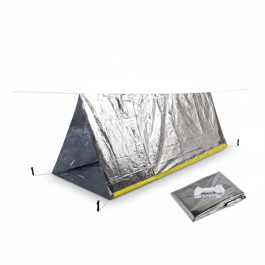 Plotselinge regen of een onverwachte nacht in het veld kan snel gevaarlijk worden. Dit noodtent biedt in een paar seconden een droge, beschermde ruimte voor twee personen. De waterdichte PE buitenlaag houdt vocht tegen, terwijl de reflecterende binnenkant warmte terugkaatst. In de levering zijn een thermische deken en een noodfluit inbegrepen om veiligheid en comfort te verhogen.