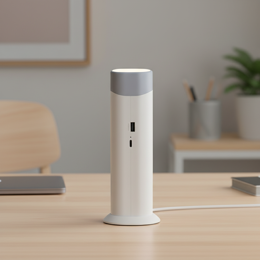 Orde op het bureau en direct licht wanneer nodig. Een mobiele oplossing voor dagelijks gebruik en noodsituaties.