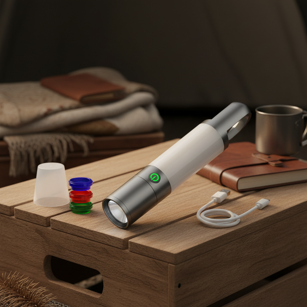 Het is frustrerend om in het donker naar uitrusting te zoeken of ’s nachts de weg kwijt te raken. Deze oplaadbare LED-zaklamp biedt krachtig licht en verwisselbare kleurfilters, zodat jij altijd de juiste verlichting hebt. De ingebouwde USB C-accu zorgt voor snel opladen en lange gebruiksduur zonder batterijvervanging. Door het compacte formaat past ze in een rugzak, handschoenenkastje of aan de sleutelring en is ze altijd binnen handbereik.