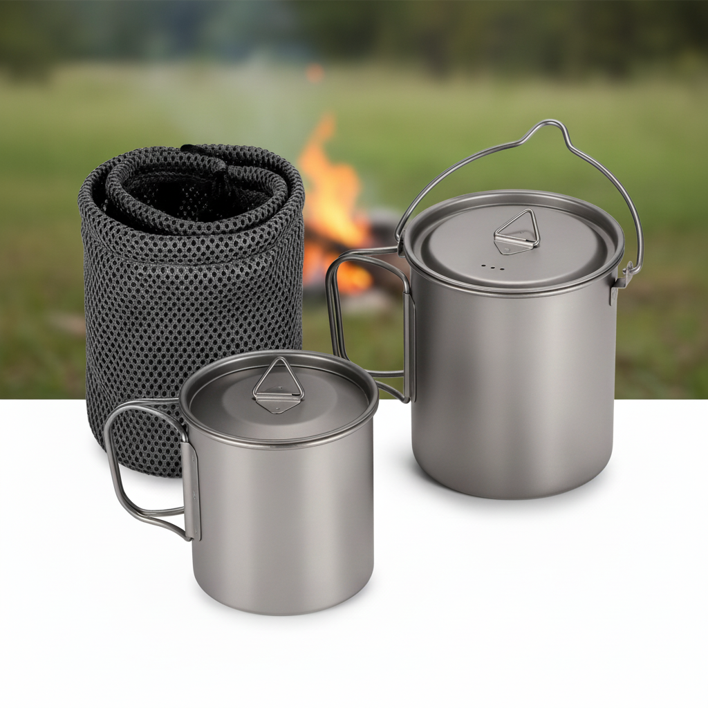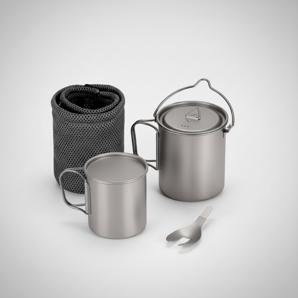 Tijdens het kamperen of op backpacktochten is kookgerei vaak een onnodige last. Deze set combineert ultralicht materiaal met doordachte compactheid en lost dit probleem op. Een 750 milliliter pan en een 450 milliliter beker bieden genoeg volume voor maaltijden en drankjes onderweg. Het opvouwbare combi-bestek bespaart ruimte en vervangt apart bestek.