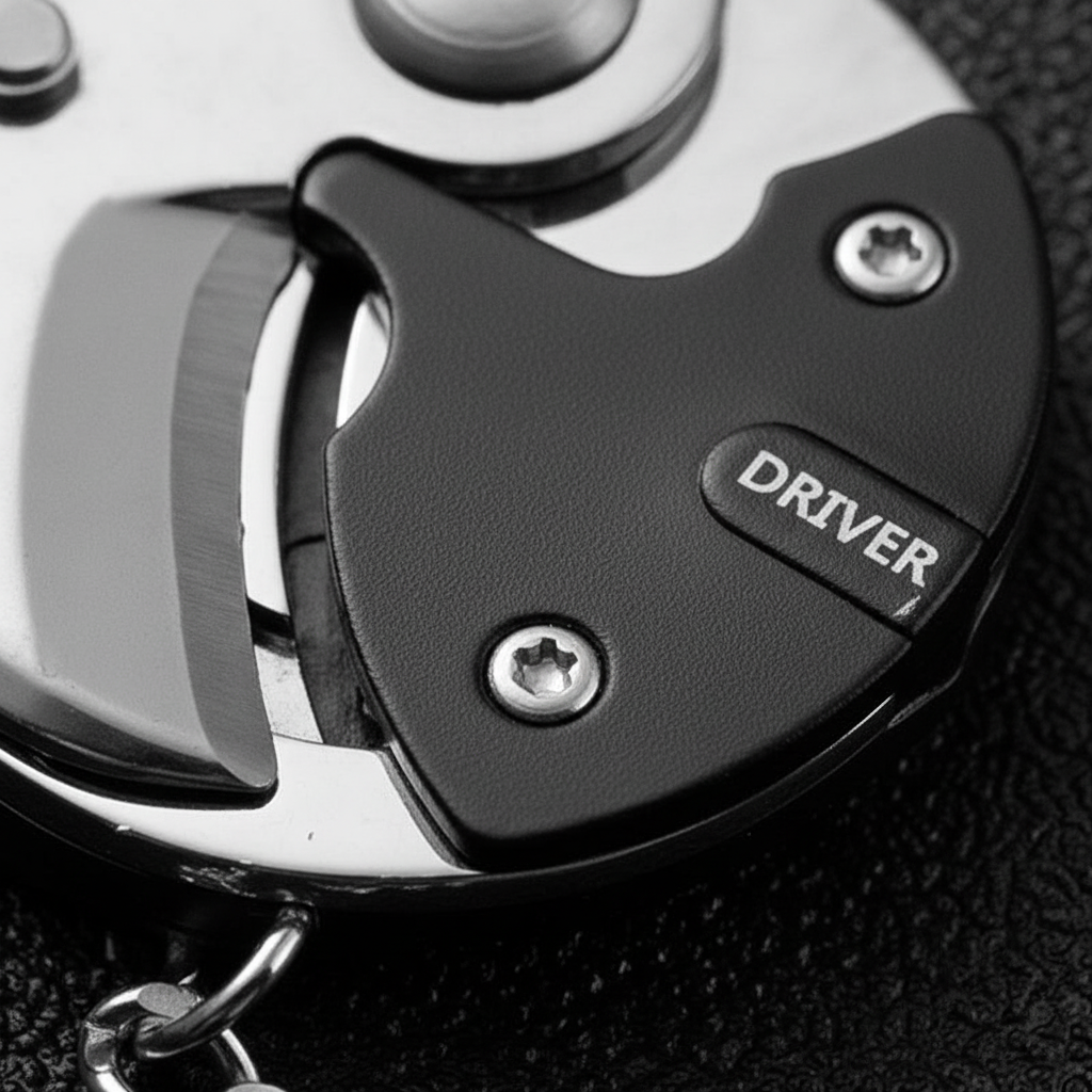 Wees altijd voorbereid zonder extra gewicht. Dit compacte gereedschap verenigt nuttige functies in een robuuste sleutelhanger vorm.