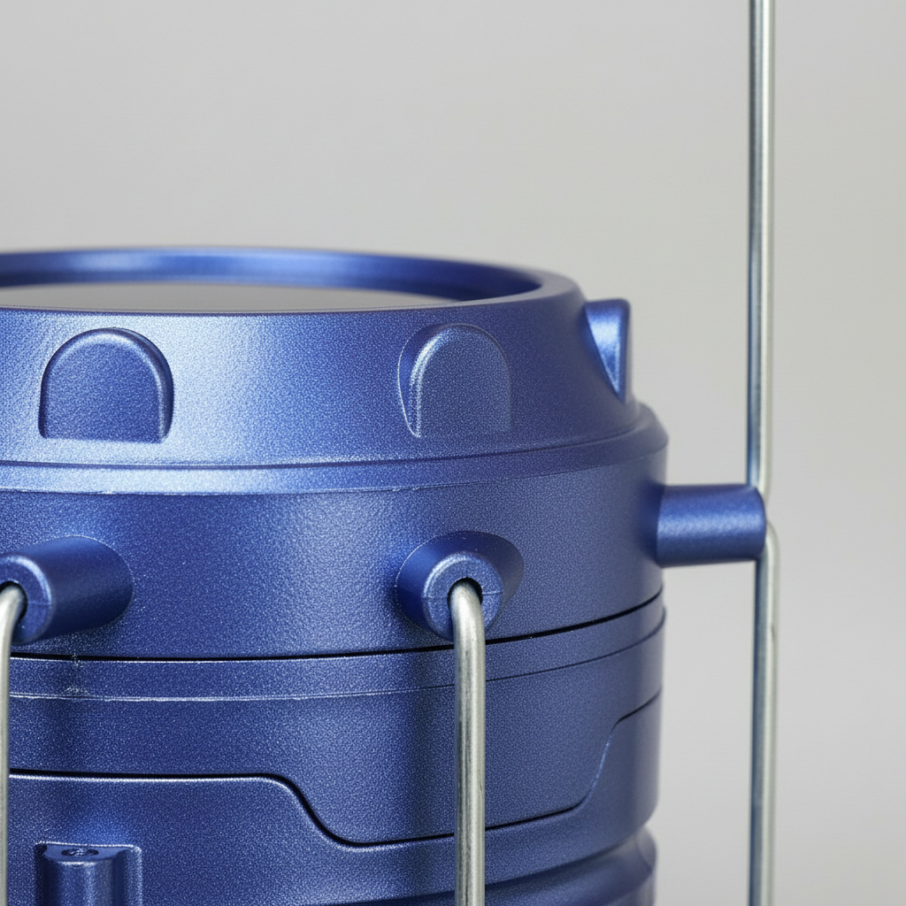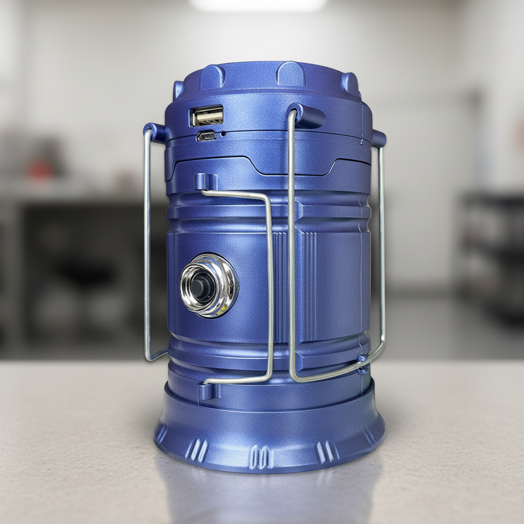 Laad de lamp via zonne-energie of USB. Dit maakt je onafhankelijk van stopcontacten tijdens buitenactiviteiten.