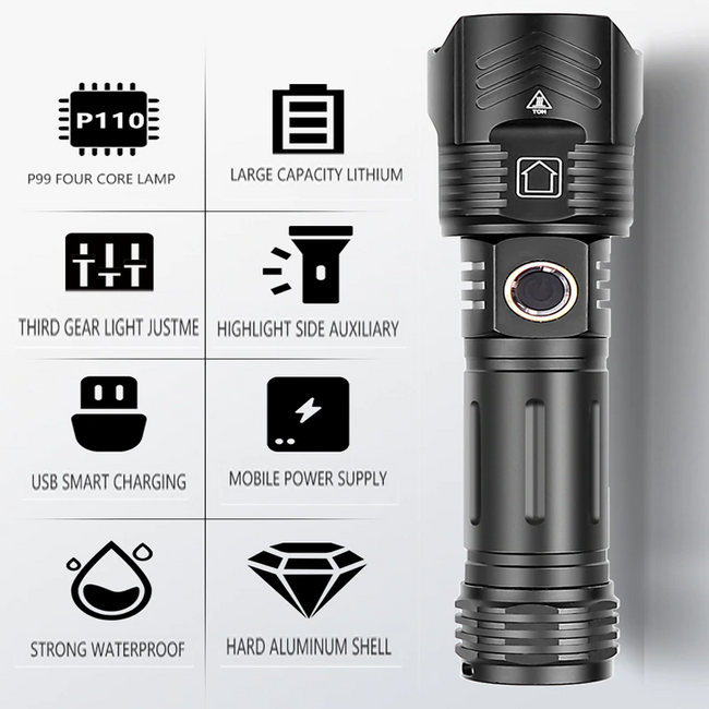 Ben je op zoek naar een krachtige, maar handzame zaklamp? Wil je goed uitgerust op avontuur? Dan kan de Ultra Bright Light niet ontbreken in jouw uitrusting! Deze led zaklamp is de krachtigste lichtbron in tijden!