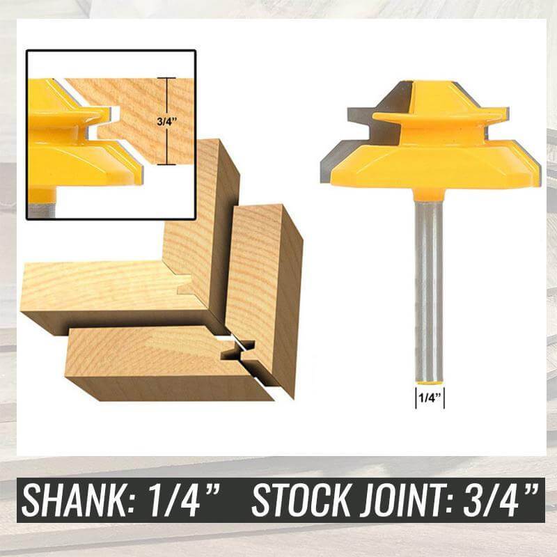 Word een meester in het maken van lades, dozen of zelfs holle kolommen met behulp van dit 45° Lock verstekfreesbeentje! De in elkaar grijpende 45° snede helpt u bij het maken van extreem sterke verbindingen door een mechanisch voordeel te bieden dat ervoor zorgt dat de onderdelen niet verschuiven wanneer ze worden vastgeklemd. Het heeft een optimale schaarhoek en extra dikke punten om u een ongeëvenaarde precisie en een maximale standtijd te geven die zeker aan al uw behoeften zal voldoen.
