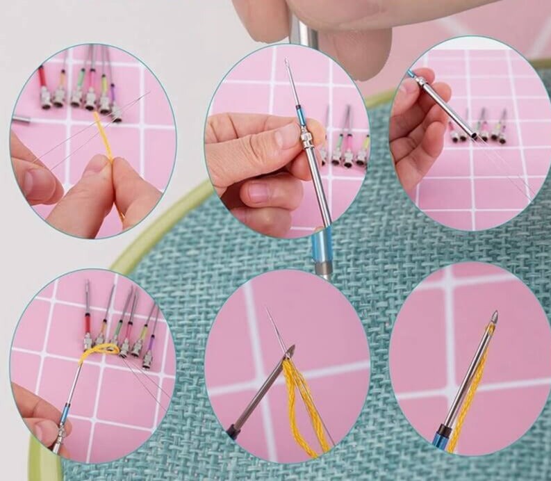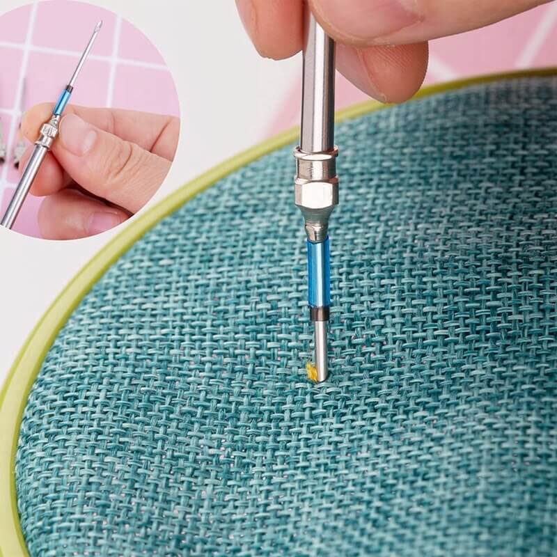 De stevige borduurpen is ontworpen om de fysieke inspanning en het ongemak tot een minimum te beperken, in vergelijking met de traditionele manier van borduren waarbij scherpe naalden worden gebruikt, wat vaak tot verwondingen leidt!