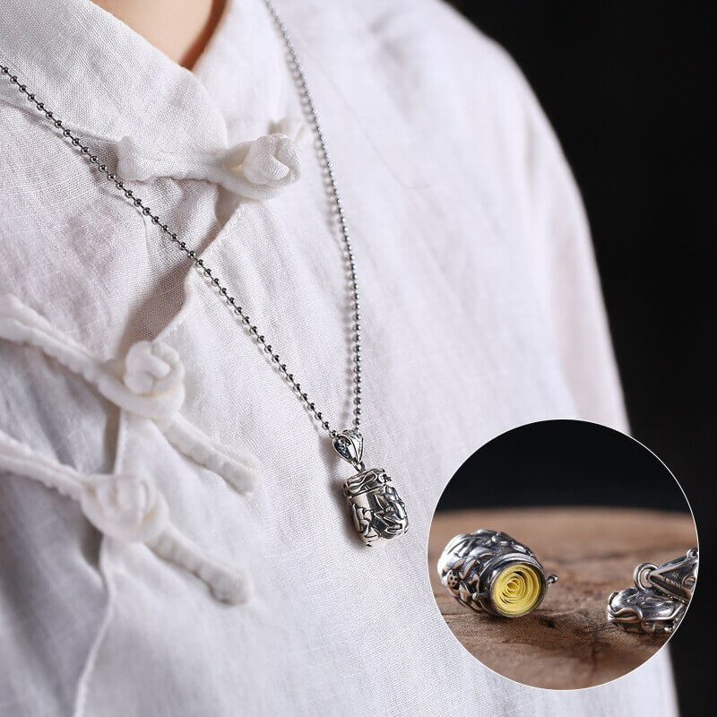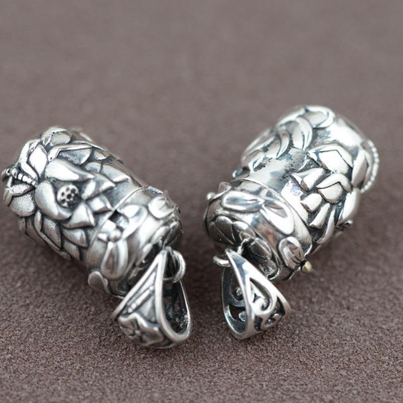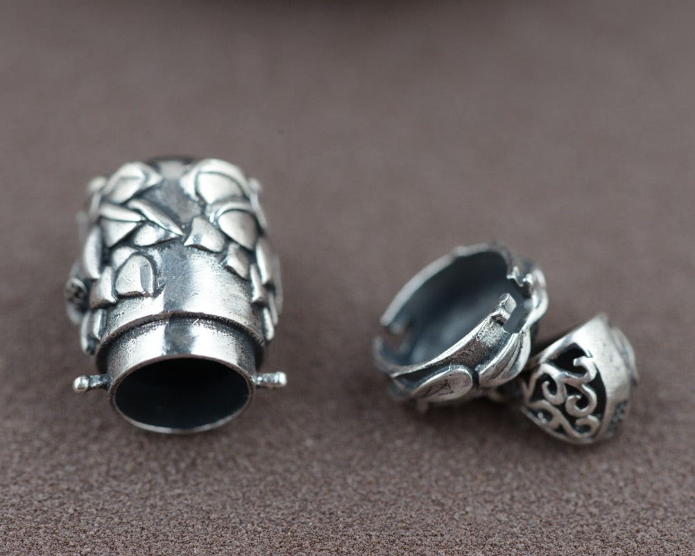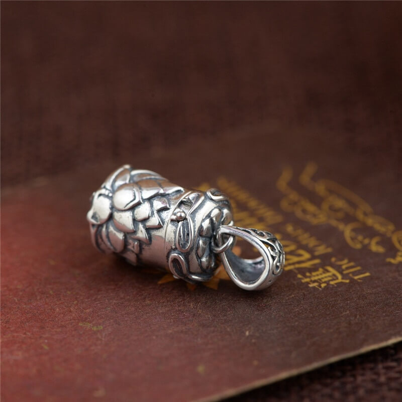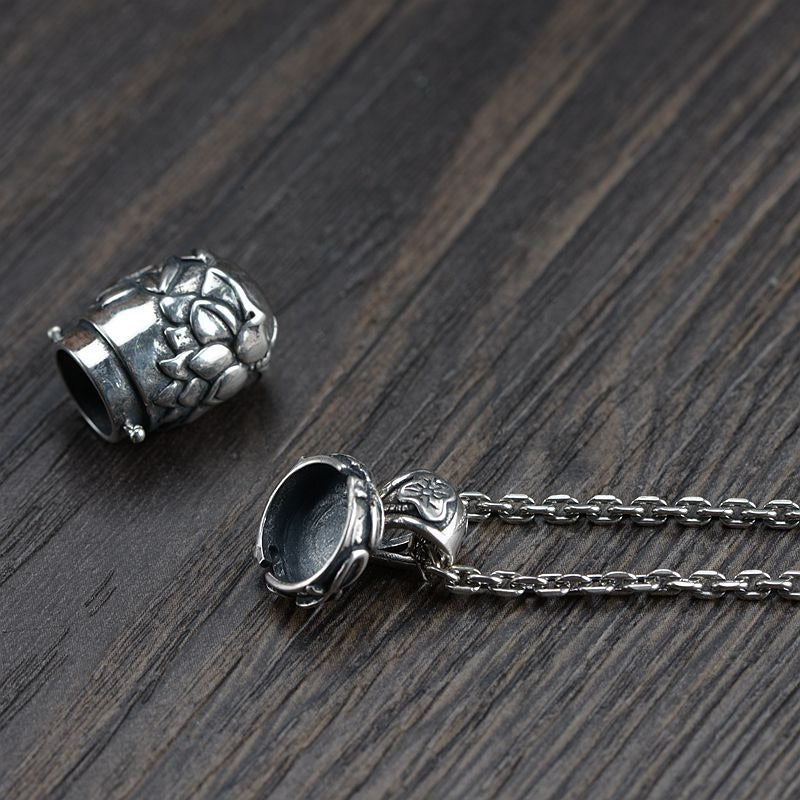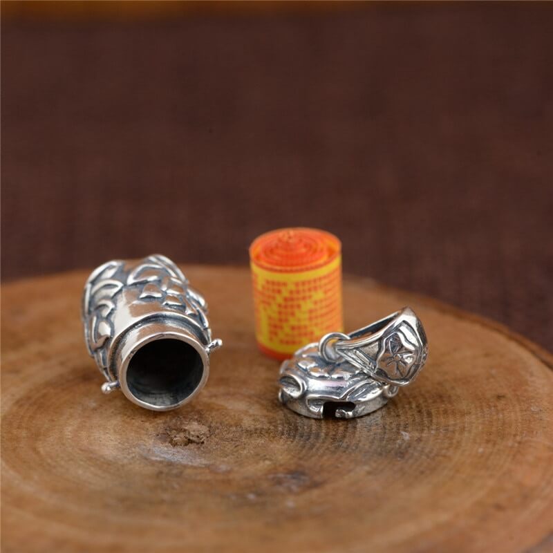 Deze Drijvende Lotus Mantra Hanger is ideaal voor een compassie mantra die erin geplaatst kan worden geschreven op een papieren rol voor eindeloos compassie. Het werkt perfect om het te vullen met allerlei dingen zoals noodpillen, de as van een geliefde, haar, geheime boodschappen, gebedsgedeelte, of andere privé items.