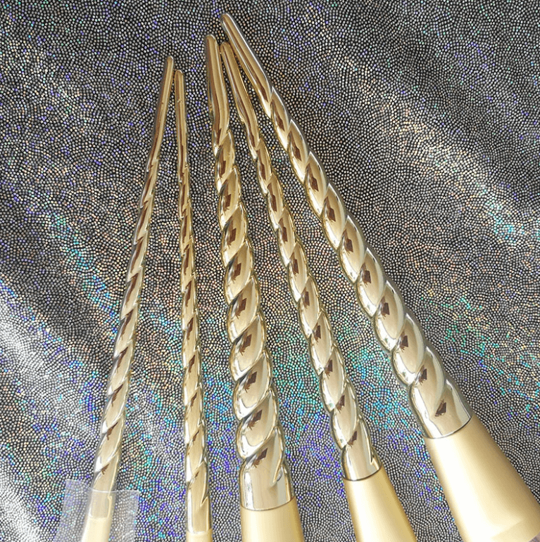 Met gouden hoornen handvaten en superzachte multi-color borstelharen. Afgewerkt met een gouden setting. Ook - alle materialen zijn veganistisch (geen eenhoorns, of andere dieren werden geschaad bij het maken van onze borstels.
