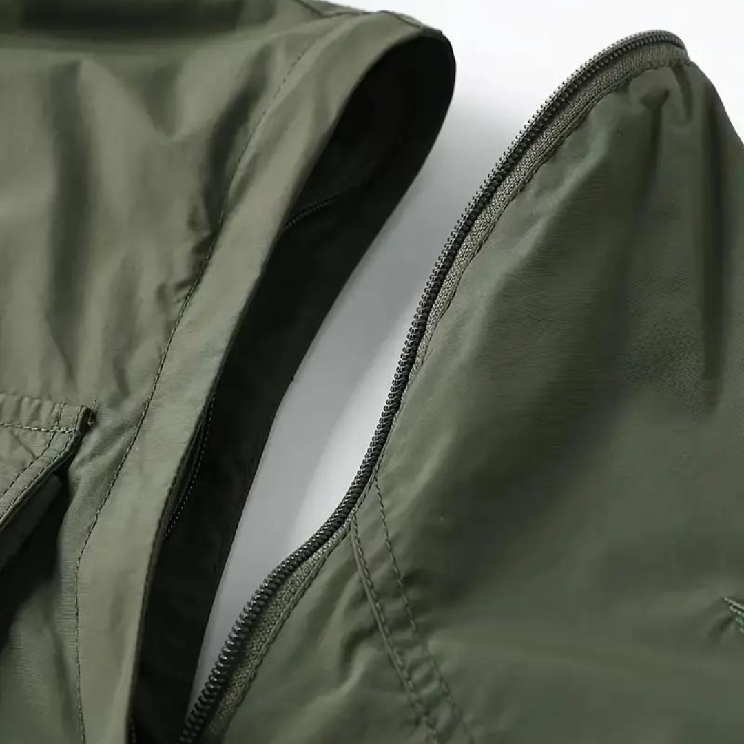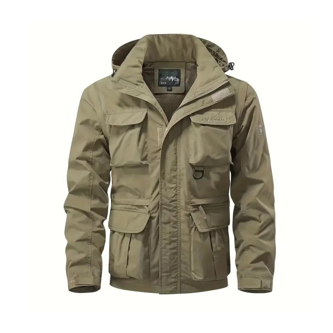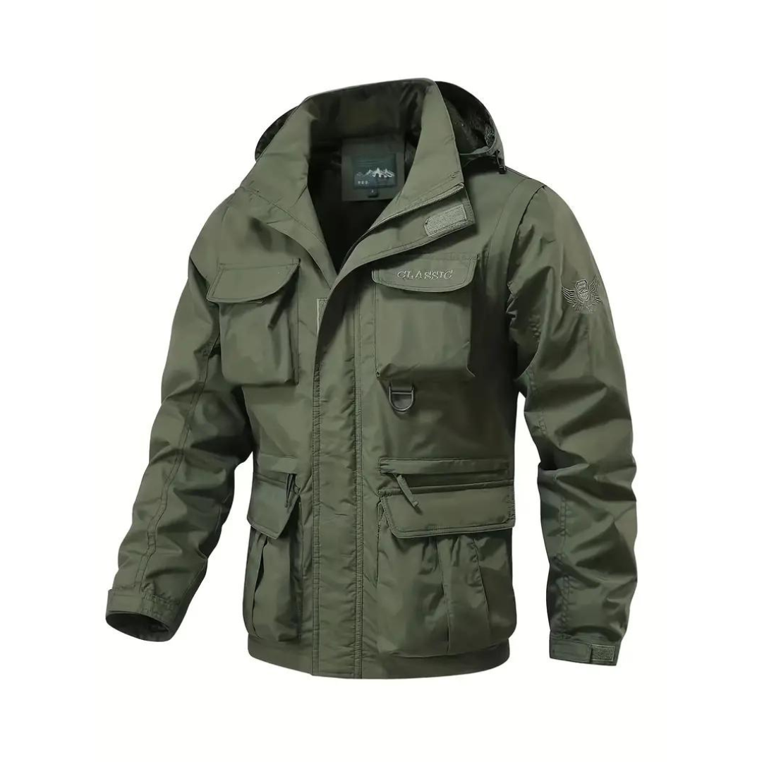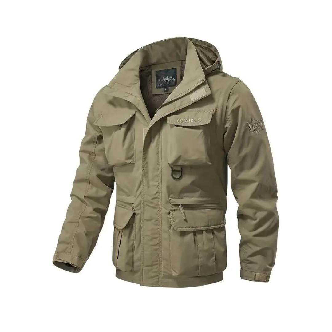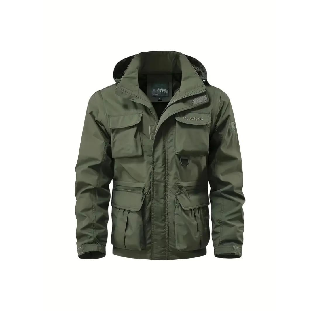 Deze heren overgangsjas biedt betrouwbare bescherming bij wisselvallig weer. Het waterafstotende, ademende materiaal houdt je droog en zorgt tegelijkertijd voor comfortabel draagcomfort. Dankzij het lichte, winddichte ontwerp is het ideaal voor actieve dagen, terwijl de afneembare capuchon en verstelbare zoom extra veelzijdigheid bieden. Een moderne jas die functionaliteit en stijl moeiteloos combineert.