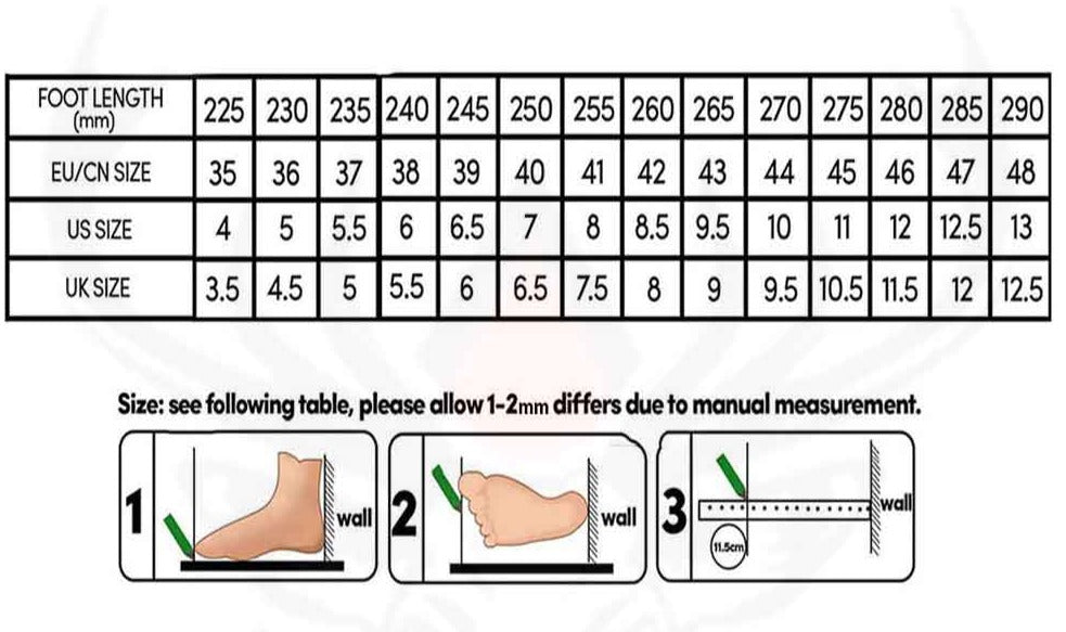 Let op: Deze schoenen kunnen kleiner uitvallen dan je gewend bent. Gebruik daarom onderstaande maattabel.
