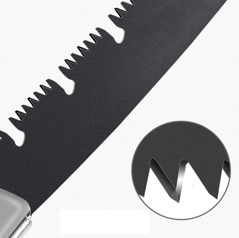 - Treksnede Ontwerp - De drievoudig geslepen scheermesvormige tanden van uw rugzakzaag zijn gemaakt voor pull cut zagen met 9 tanden per inch (9TPI) om soepel en snel te zagen. Gehard om scherp te blijven kan uw kleine zaag voor hout door takken, botten en zelfs PVC plastic zagen tot 4 inch in diameter.