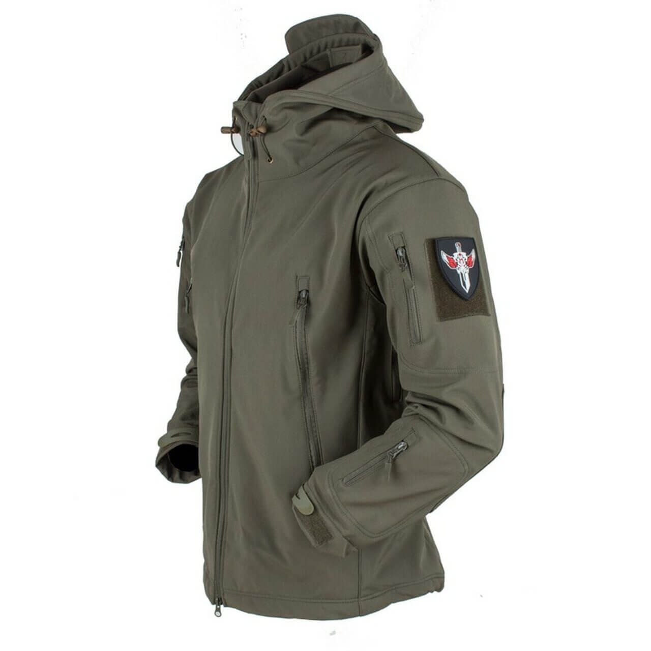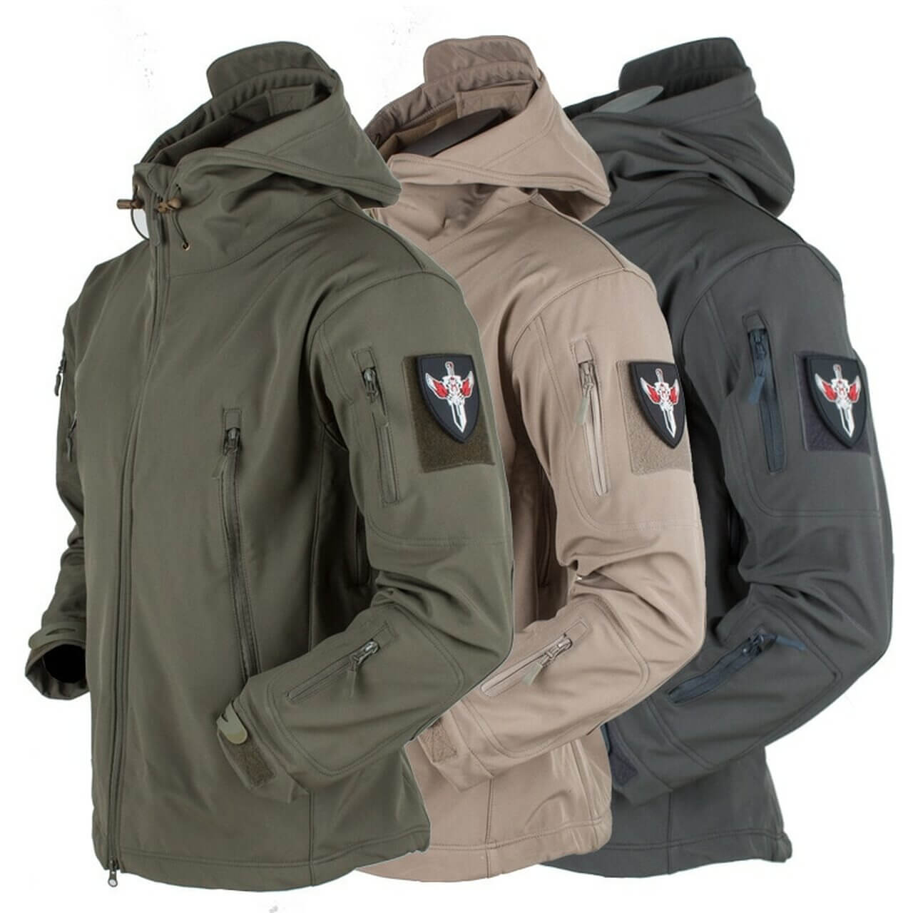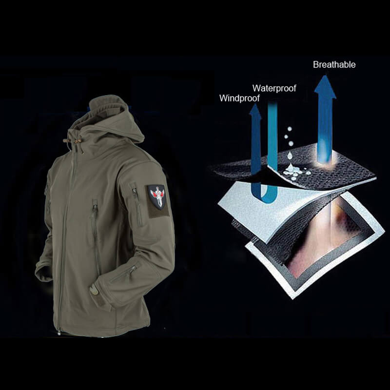 Waterafstotende tactische jas: De stof heeft een waterdicht, winddicht en ademende stof dat regen, sneeuw en wind buiten houdt, maar ook een zekere hoeveelheid zweet en lichaamswarmte kan afvoeren.