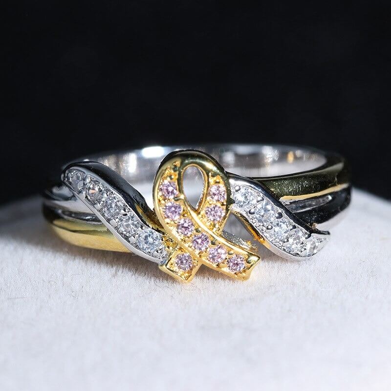 De Sterling Zilveren Courage Ring is een subtiele manier om anderen te laten weten dat je de strijd tegen borstkanker steunt. Het roze lint staat voor moed en kracht, en het sterling zilver in de ring staat voor zuiverheid en hoop. Draag hem om je vinger en maak een statement van hoop met deze ring!