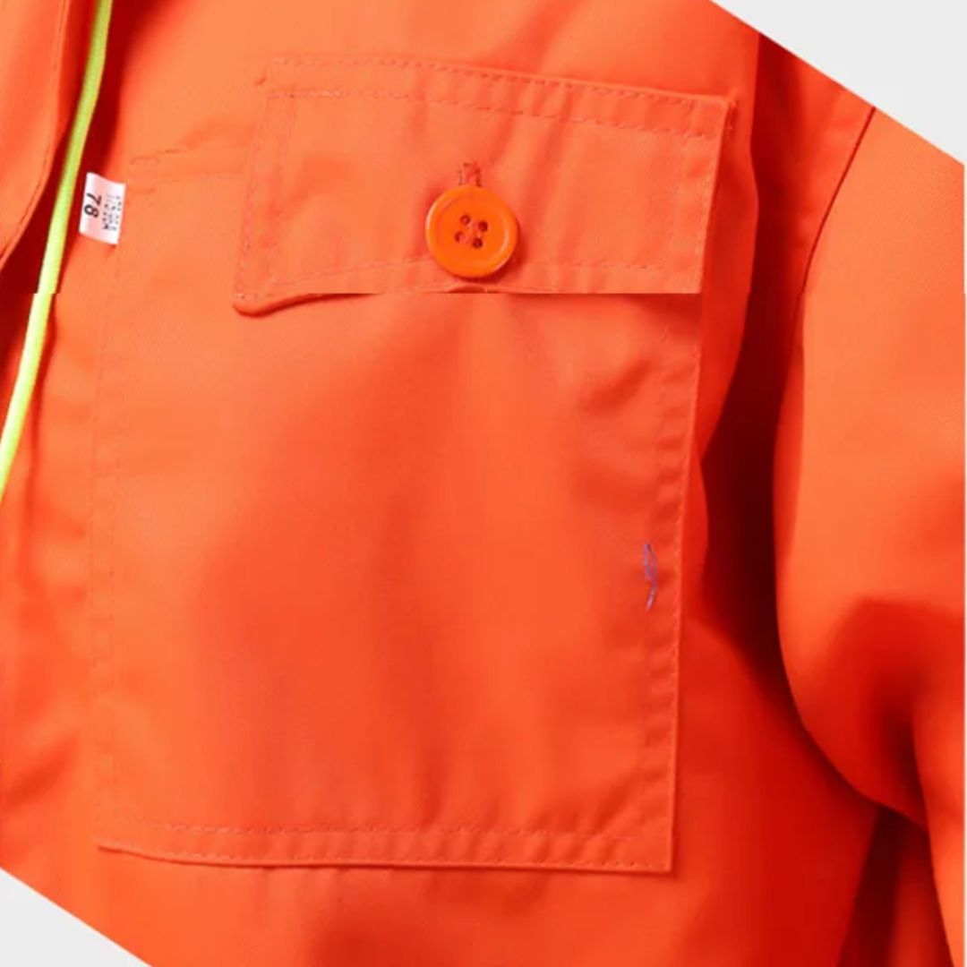 Onze veiligheidswerkoverall is vervaardigd uit hoogwaardige materialen die stof en andere verontreinigingen afstoten, waardoor een schone werkomgeving wordt gewaarborgd. De nauwsluitende mouwen en afgesloten naden bieden extra bescherming door te voorkomen dat stof de kleding binnendringt, terwijl het ademende materiaal comfort biedt gedurende lange werkuren.